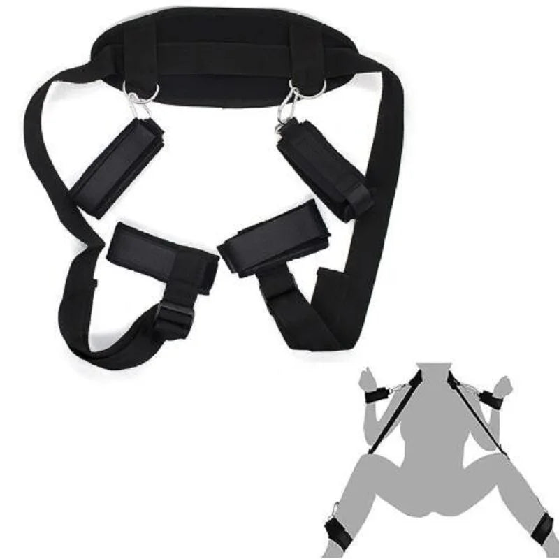Desata la pasión y lleva tus juegos eróticos al límite con el Arnés de Sujeción BDSM para Inmovilización de Manos y Piernas con Sujeción en Cuello.